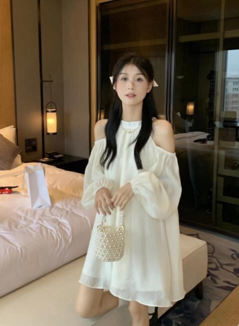 2023春秋新作 女 レディース ハイウエスト 長袖 ミニ ワンピース ドレス 台型スカート S-L
