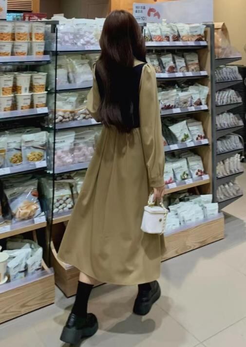 2023春秋新作 女 レディース ハイウエスト 長袖 ロング ワンピース 台型スカート M-4XL