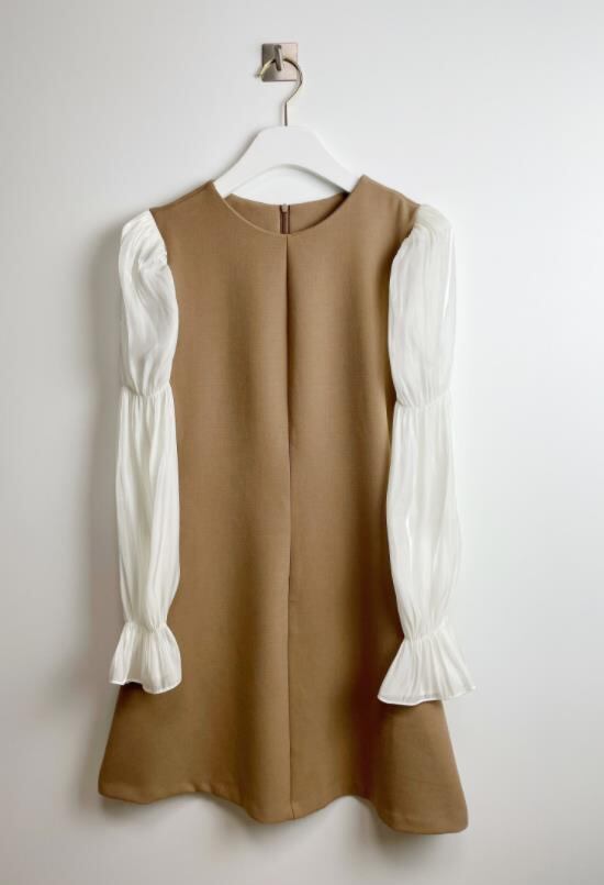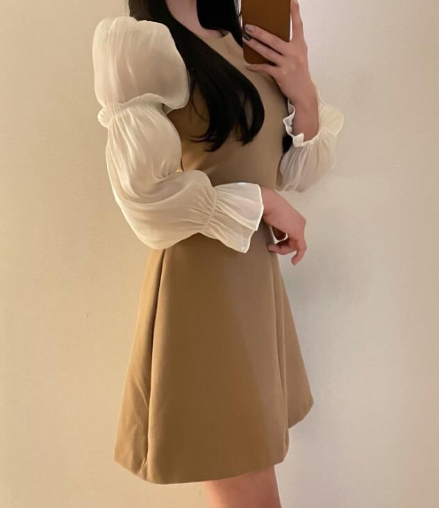春秋新作 女 レディース ハイウエスト 長袖 パフスリーブ ミニ ワンピース ドレス 台型スカート
