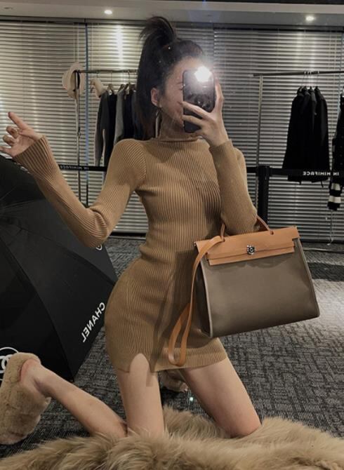 2023春秋新作 女 レディース ハイウエスト 長袖 ミニ ワンピース ドレス タイトスカート 4色