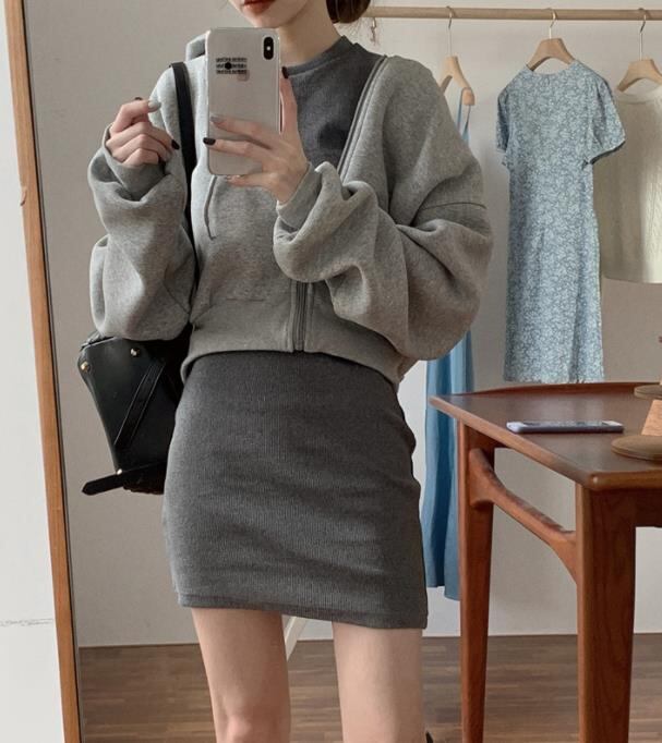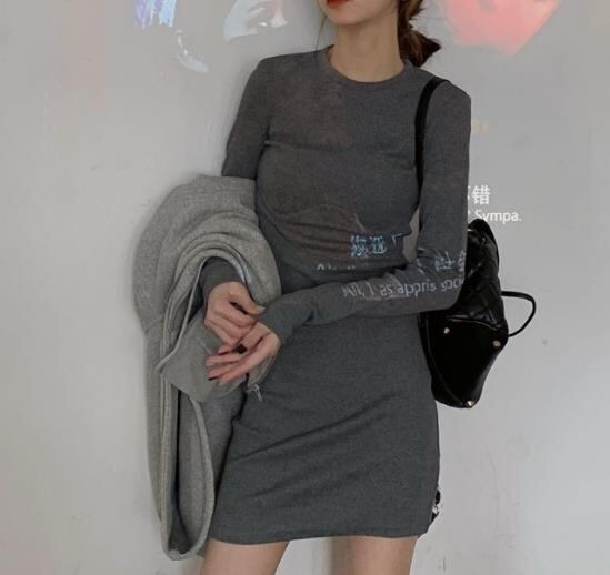 春秋新作 女 レディース ハイウエスト 長袖 ミニ ワンピース ドレス タイトスカート セット