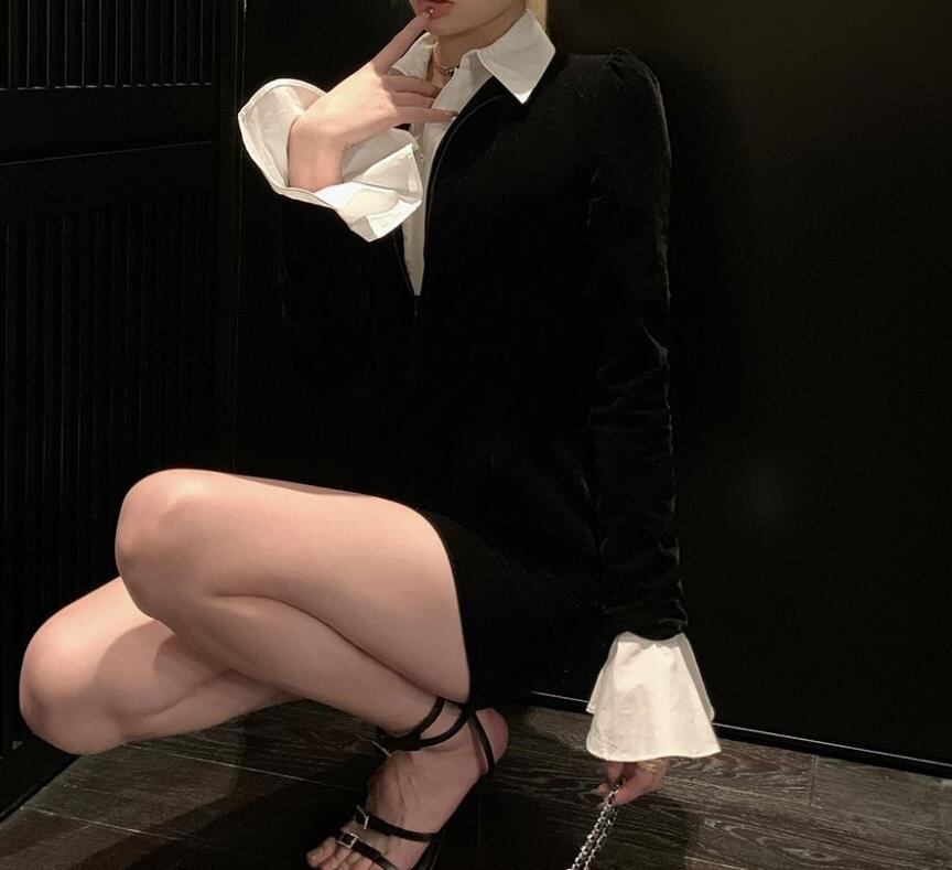 2023春秋新作 女 レディース ハイウエスト 長袖 ミニ ワンピース ドレス タイトスカート S-XL