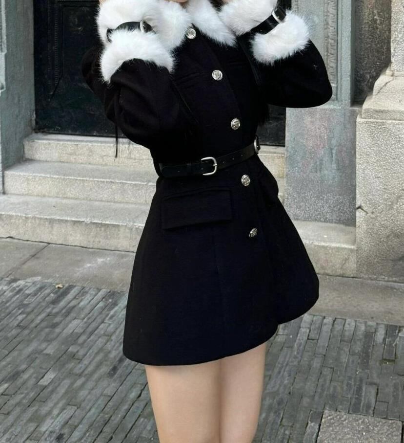 2025秋冬新作 女 レディース ハイウエスト 長袖 厚手 ミニ ワンピース ドレス 台型スカート