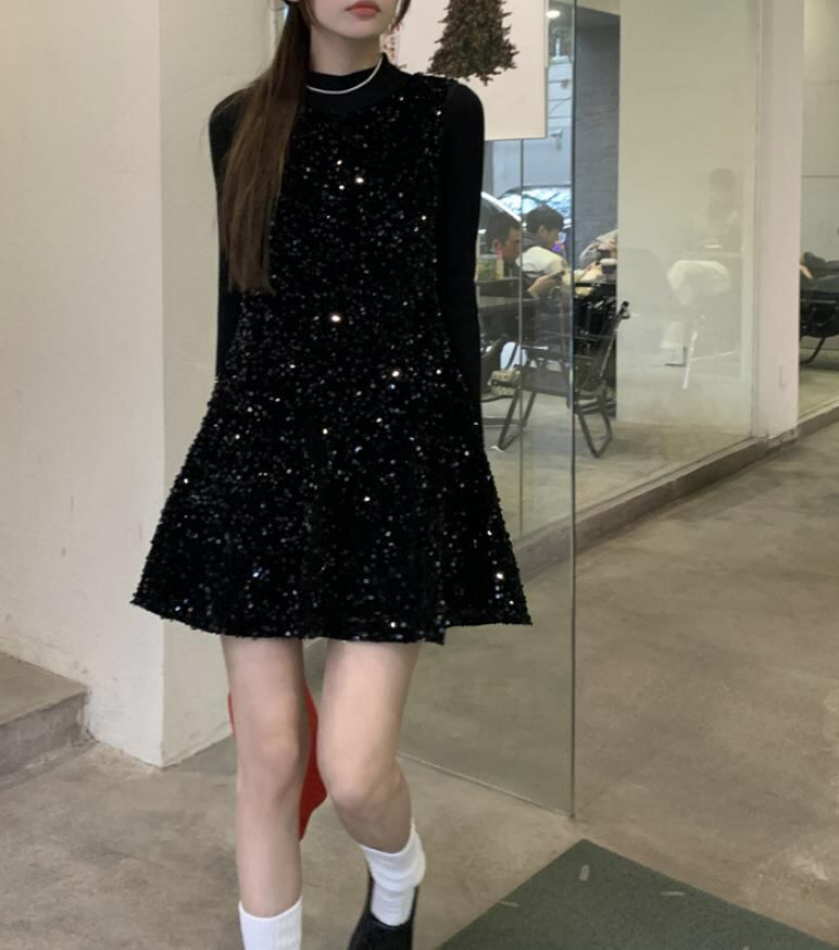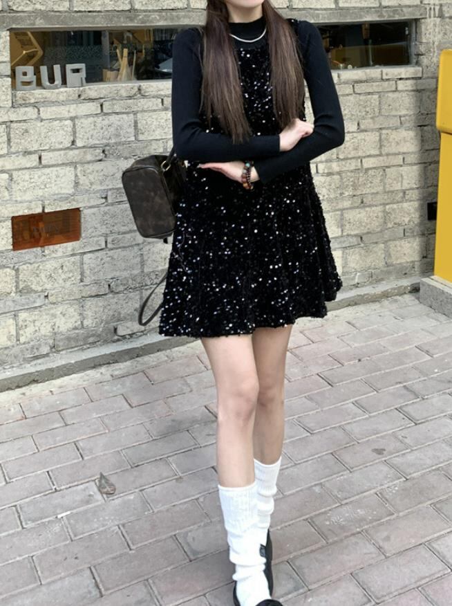 秋冬新作 女 レディース 袖なし サロペットスカート ミニ ワンピース ドレス 台型スカート セット