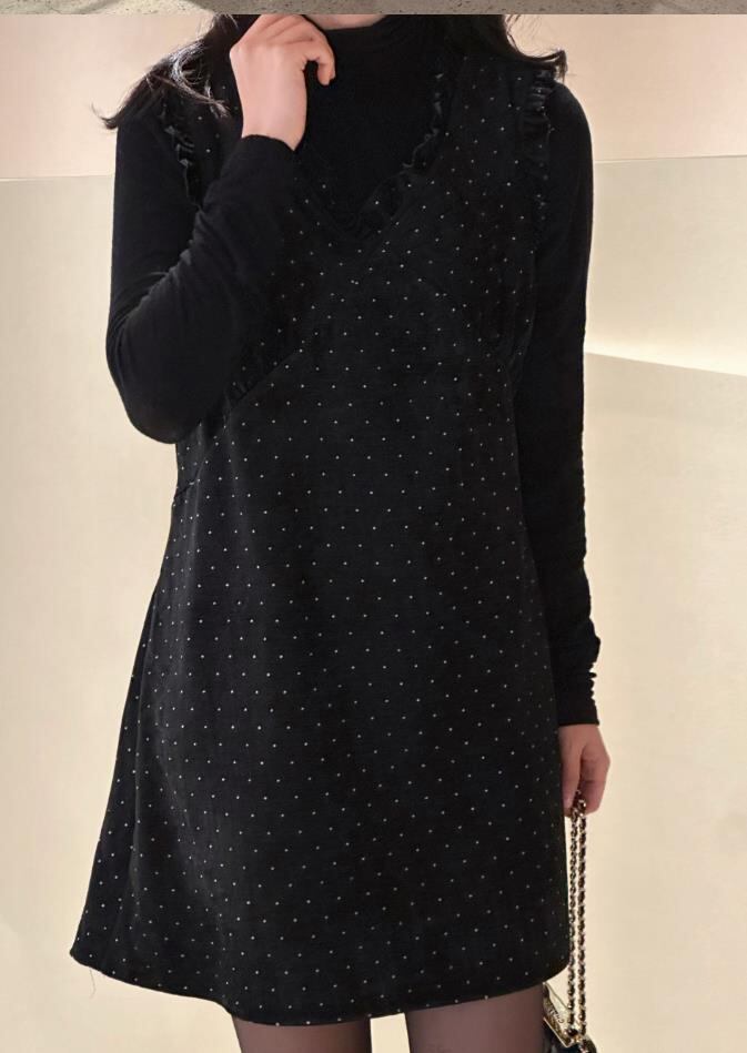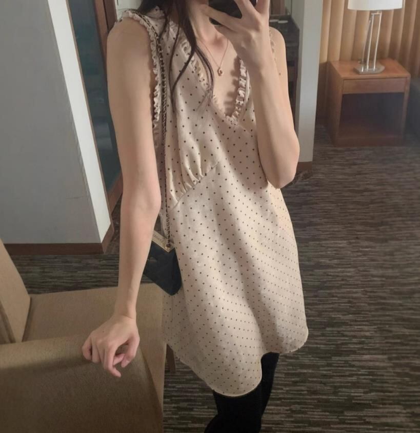 2025春秋新作 女 レディース ハイウエスト 袖なし ドット ミニ ワンピース ドレス タイトスカート
