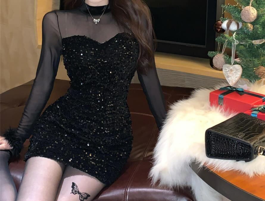 2025秋冬新作 女 レディース ハイウエスト 長袖 ミニ ワンピース ドレス タイトスカート
