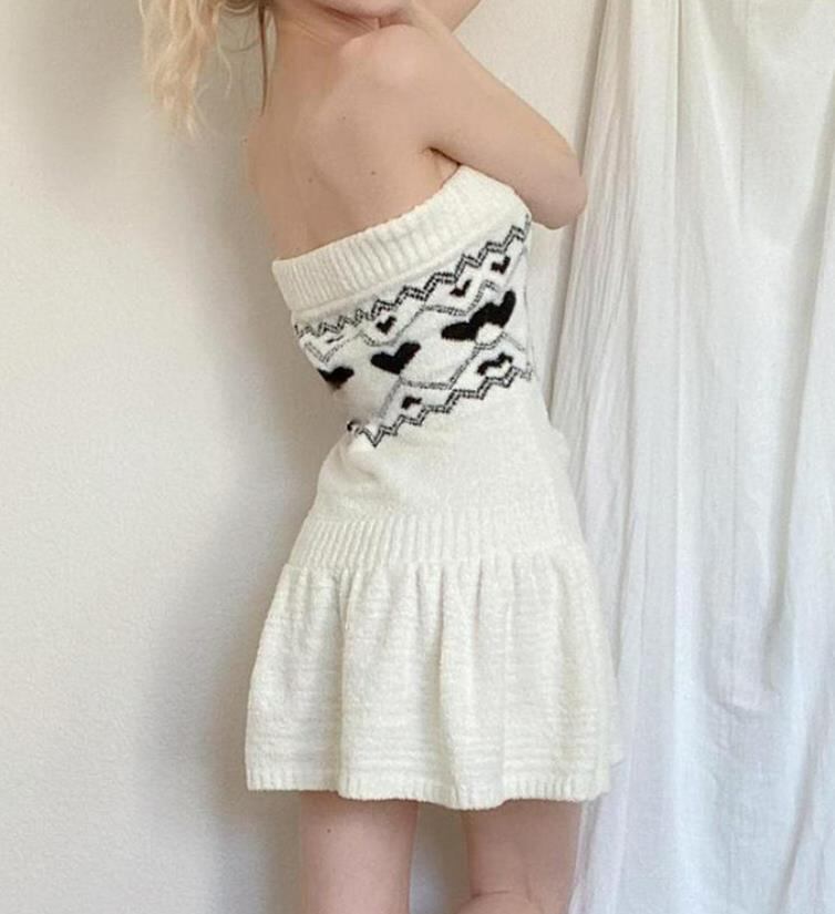 2025秋冬新作 女 レディース ハイウエスト 袖なし ニット ミニ ワンピース ドレス 台型スカート