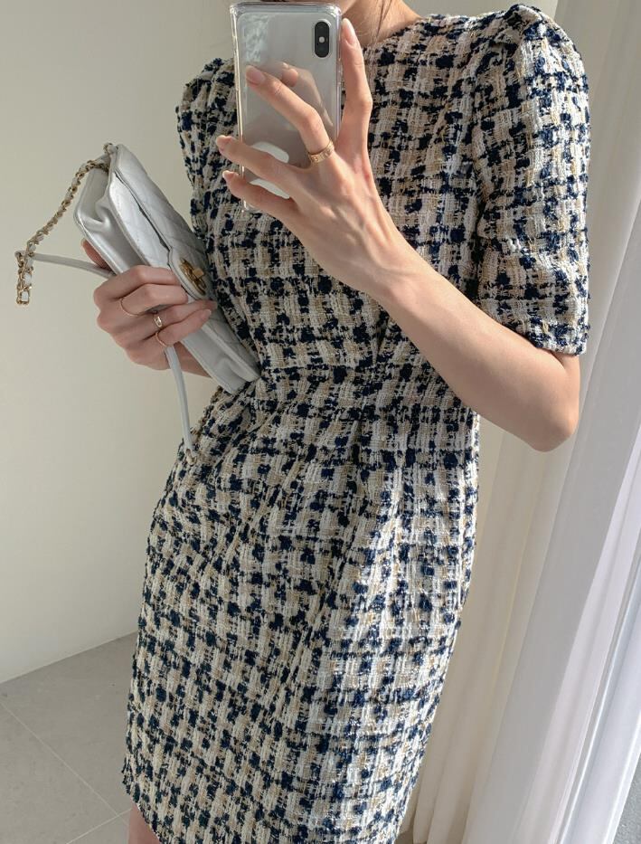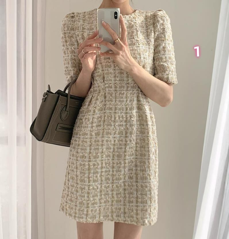 2025秋冬新作 女 レディース ハイウエスト 半袖 chic ミニ ワンピース ドレス タイトスカート