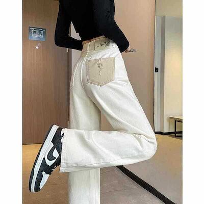 春秋新作 ガウチョパンツ レトロブルー ワイドパンツ ハイウエスト ゆとりがある ストレートシリンダ ワイドパンツ レディース