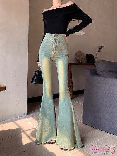 2024春夏 パンツ デニム ジーンズ スキニー ワイドレッグ フレア スリム ウォッシュ加工 ハイウエスト 脚長効果 美脚効果 細見え 春 カジュアル 韓国ファッション レディース お出かけ