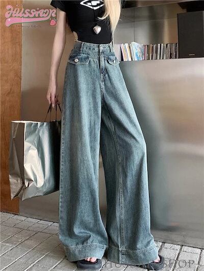 2024 春夏 ボトムスジーンズ デニム ハイウエスト 脚長効果 レッグ ファッション 足長効果 デニム ルーズ カジュアル スタイルアップ 脚長 美脚 クール かっこいい