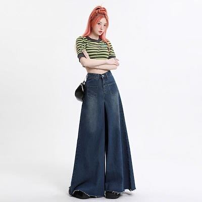 2025新作 おしゃれ 流行り デニムパンツ ハイウエスト ワイドパンツ ジーンズ レディース レトロ ゆったり ズボン スラックスパンツ デニム スキニーパンツ