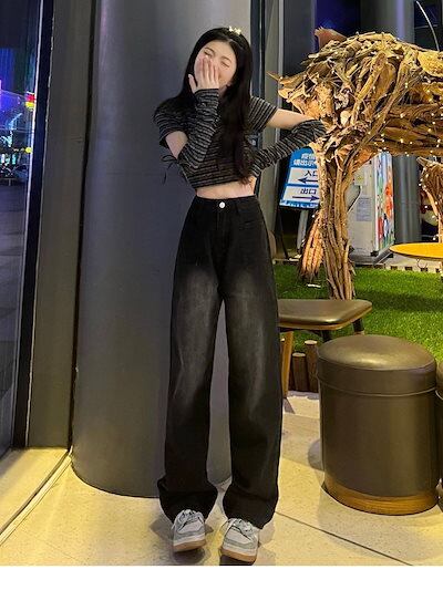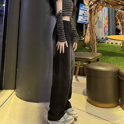 ワイドパンツ新作 トレート ジーンズ レディースハイウエスト デニム 着痩せ ワイドパンツ ドレープ感 ロングズボン