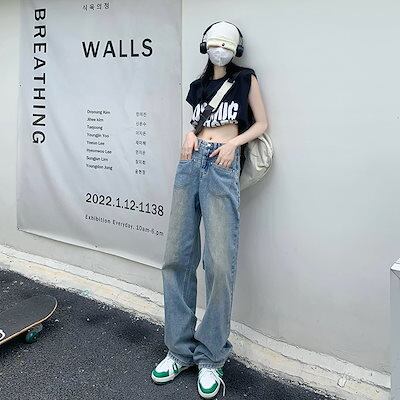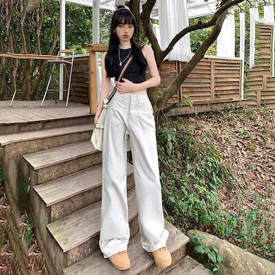デニムボトムス ジーンズ ワイドパンツ レディースストレート 着痩せ ジーンズ ロングパンツ レディース服 デザイン感 ハイウェストゆったり 長ズボン ロングズボン ワイドパンツ