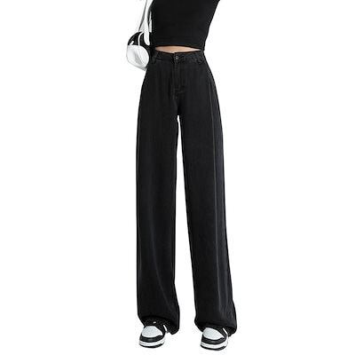 デニムボトムス ジーンズ ワイドパンツ レディース ブラック 夏 モップパンツ 着痩せ ジーンズ ロングパンツ レディース服 デザイン感 ハイウェストゆったり 長ズボン ロングズボン ワイドパンツ