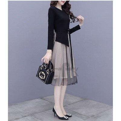 ワンピース ひざ丈ワンピース レディース Aライン 長袖 膝丈 着痩せ 春秋 フォーマル 結婚式 ワンピ チュールスカート コーデ 30代 40代 50代 通勤 OL
