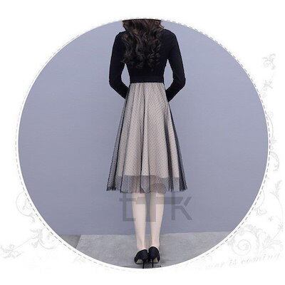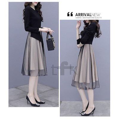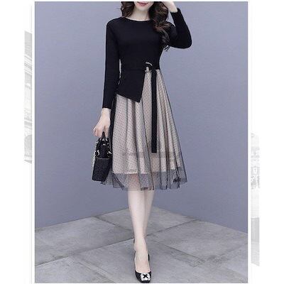ワンピース ひざ丈ワンピース レディース Aライン ワンピ チュールスカート 長袖 膝丈 着痩せ 春秋 フォーマル 結婚式 コーデ 30代 40代 50代 通勤 OL