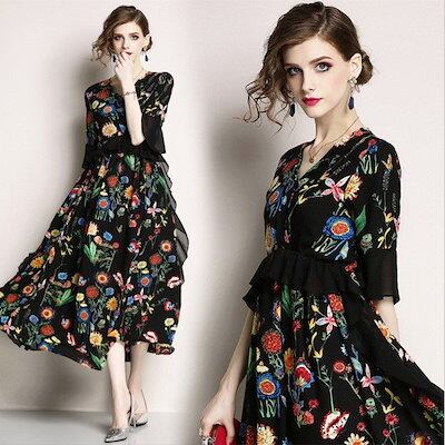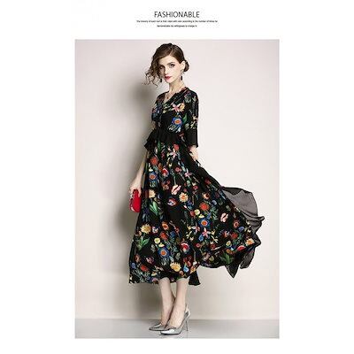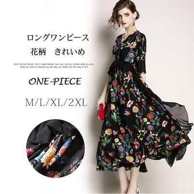 ロングワンピース レディース きれいめ シフォンワンピース 花柄 Aラインワンピース ボヘミアン リ