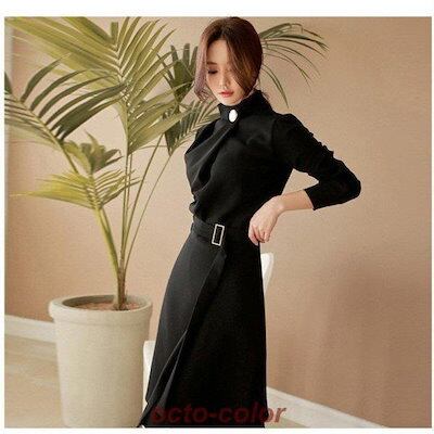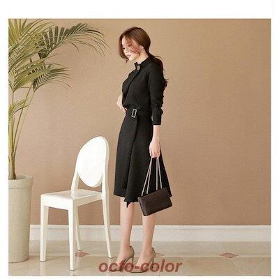 人気沸騰新柄追加 膝丈ワンピース Aライン セレモニースーツ レディース ママ 母親 フォーマル 入学式ワンピース スリム シンプル 黒 入園式 長袖 上品 気質