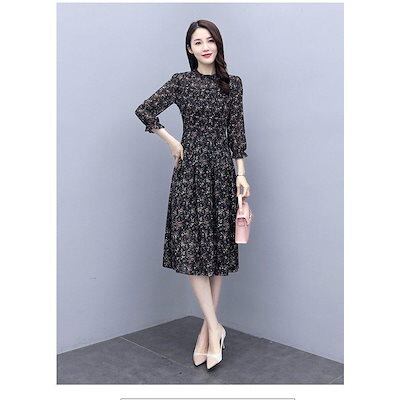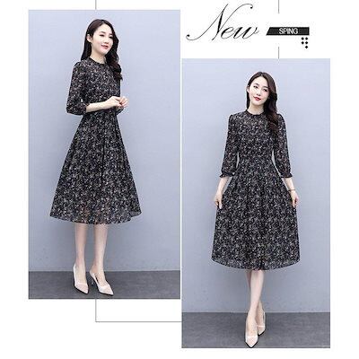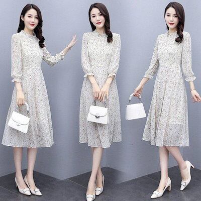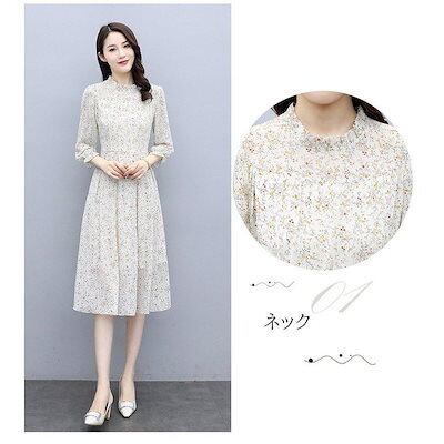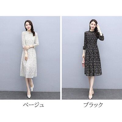 ワンピース レディース きれいめ マキシワンピース 秋 長袖ワンピース 花柄シフォン Aラインスカート オシャレ大人 ゆったり 結婚式ドレス お出かけ