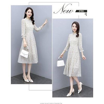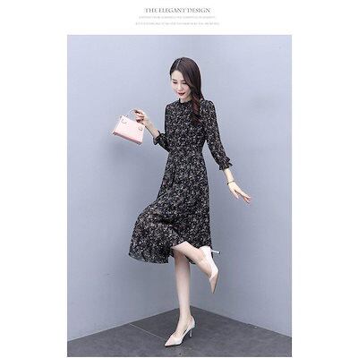ワンピース レディース きれいめ マキシワンピース 秋 Aラインスカート オシャレ大人 ゆったり 長袖ワンピース 花柄シフォン 結婚式ドレス お出かけ
