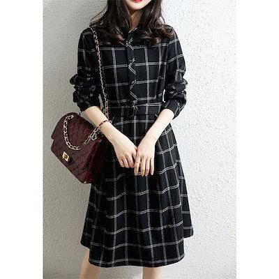 シャツワンピース レディース キレイめ ロング 可愛い 春秋 長袖 シャツワンピ Aライン チェッ