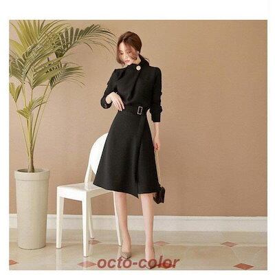 目玉商品 超人気 膝丈ワンピース Aライン セレモニースーツ レディース ママ 母親 フォーマル 入学式ワンピース スリム シンプル 黒 入園式 長袖 上品 気質