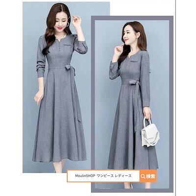 レディース レディース ロングワンピース 韓国 プリーツ ロング マキシ丈 ミモレ丈 きれいめ Aライン フレア 大人 上品 長袖 大きいサイズ カジュア