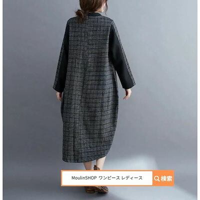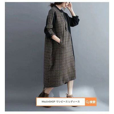 ワンピース レディース レディース ロングワンピース ロング マキシ丈 チェック柄 切り替え Aライン 大人 黒 きれいめ カジュアル 長袖 大きいサイズ 春 夏 秋