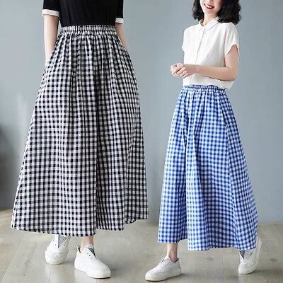 新作 ひんやりボトムススラックスパンツ チェック カジュアル ワイドパンツ 夏 大きいサイズ ズボン レディース 韓国ファッション ゆったり着痩せ キュロットスカート/パンツ ワイドパンツ