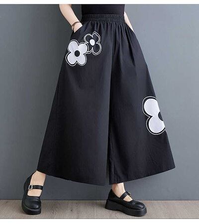 「ファットガール」 キュロットスカート 花柄 九分丈 ワイドパンツ ゴム 体型カバー 大きいサイズ ゆったり レディース 福袋