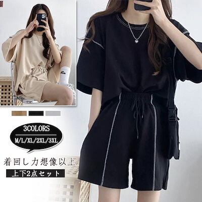 レディース 二点セット 2024 新作 おしゃれ セット スウエットセットアップ ワイドパンツ Tシャツ シンプル ショットパンツ 大きめサイズ セットアップ涼しく楽ちんセットアップ カジュアル