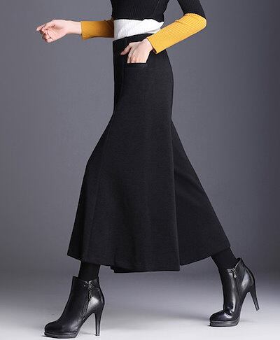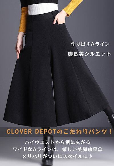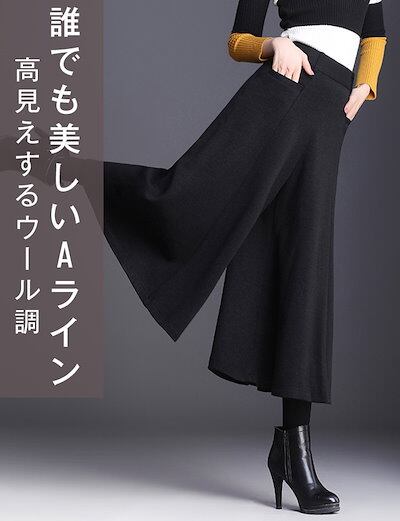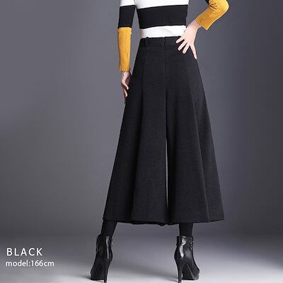 ガウチョパンツ ワイドパンツ レディース 秋冬 きれいめ 9分丈 フレア ミモレ丈 ハイウエスト ガウチョ 大きいサイズ ボトムズ 大人 オフィス 美脚 通勤 黒 無地 ゆったり おしゃれ オフィスカ