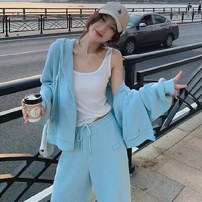 運動 スウェット上下セット カジュアル 大きいサイズ ワイドパンツ 二点セット レディース セットアップ パーカー 2oo円OFF!】2024新作 着痩せ 上下セット 【2枚購入で