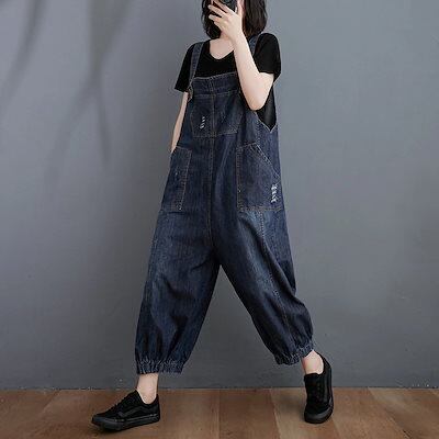 コーデ完成!サロペットデニムパンツ大きいサイズレディースサロペット韓国ファッションワイドパンツ夏服