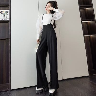 ひんやりボトムス 韓国 春 オールインワンジャンパースカートワイドパンツサロペットロングパンツポケット重ね着レディース春オーバーサイズゆったり体型カバーオーバーオール細見え着痩せ