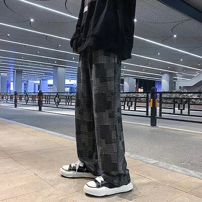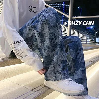 2024人気ジーンズ メンズ 大きいサイズ! ワイドパンツ デニムパンツ秋服レディースアイスシルク純綿通気性チェックジョガーパンツ韓国ファッションスラックスパンツ流行り カジュアル お洒落