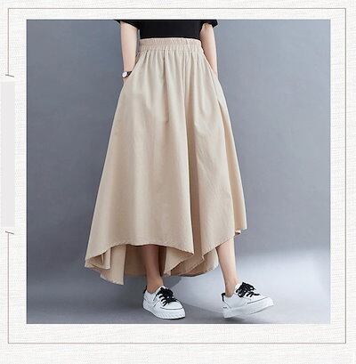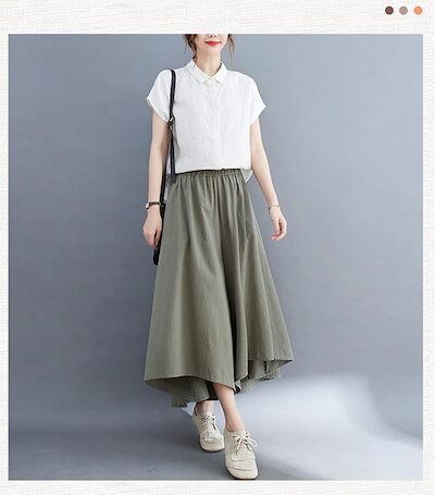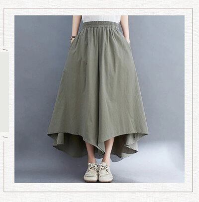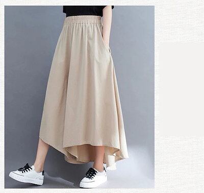 「ファットガール」 春夏 キュロットスカート 九分丈 ワイドパンツ 体型カバー ゆる 大きいサイズ 不規則裾 スラックス ゴム ハイウエスト レディース 袋付き ロングパンツ フレア メガ割