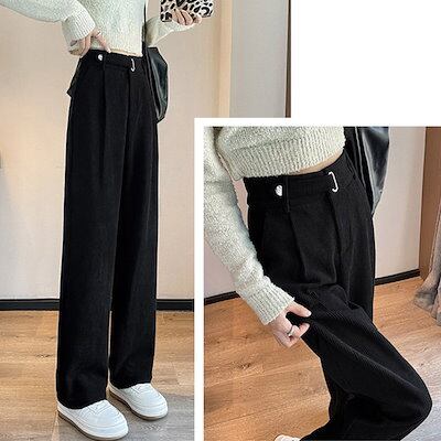 裏起毛 ワイドパンツ レディース コーデュロイ ロングパンツ ポケット付き パンツ ロング ストレート 秋 冬 秋冬 リブ 冬用 きれいめ 暖か 高身長 ワイド 厚手 ゆったり 大きいサイズ 小さいサ