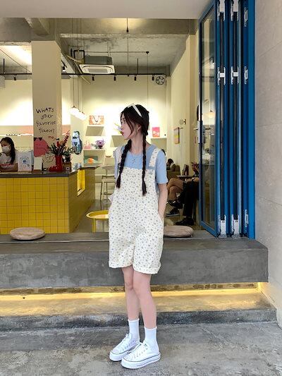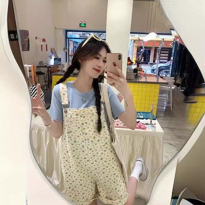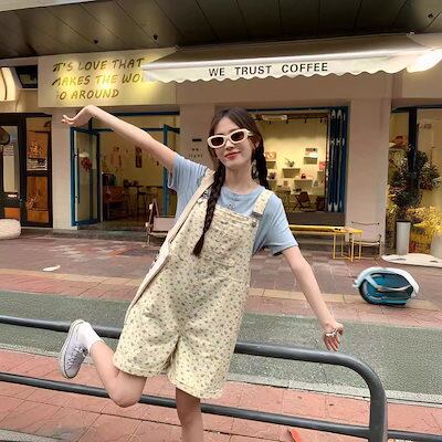 コーデ完成!サロペット 時短コーデ イチオシオールインワン 韓国ファッション 花柄デニムバックパンツ レディース 春 ゆったり ワイドパンツ ハイウエスト ストレートパンツ ショートパンツ 新作