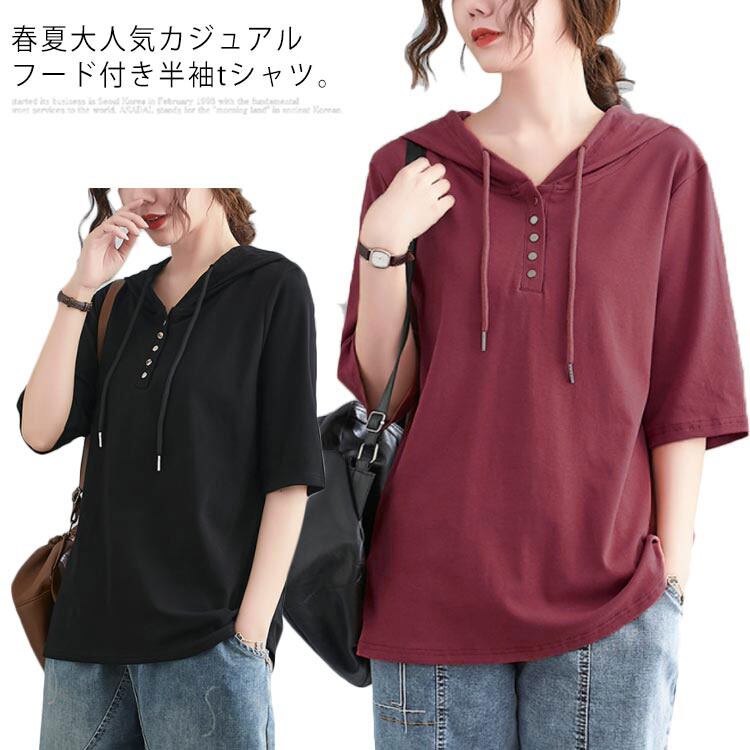 フード付きtシャツ レディース パーカー 半袖 半袖パーカー フード付き tシャツ トップ
