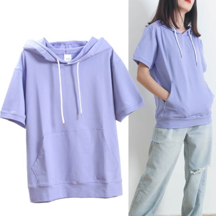 選べる全6色!夏服 半袖パーカー フード付き レディース フード付きtシャツ プルオーバー