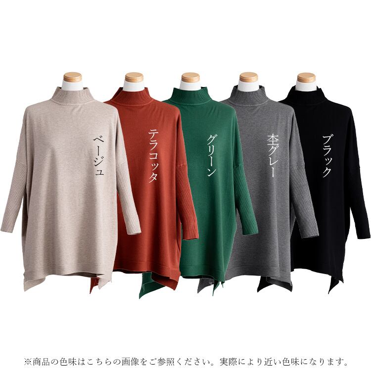 ゆったりハイネックドルマンニット ニット トップス セーター ハイネック レディース 体型カバー ドルマン