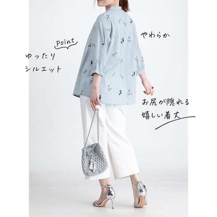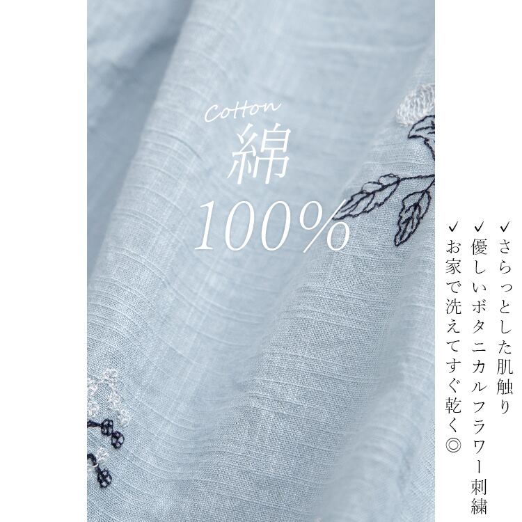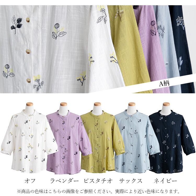 【綿100%】ナチュ可愛いボタニカル刺繍ブラウス 刺しゅう ボタニカル トップス レディース シャツ