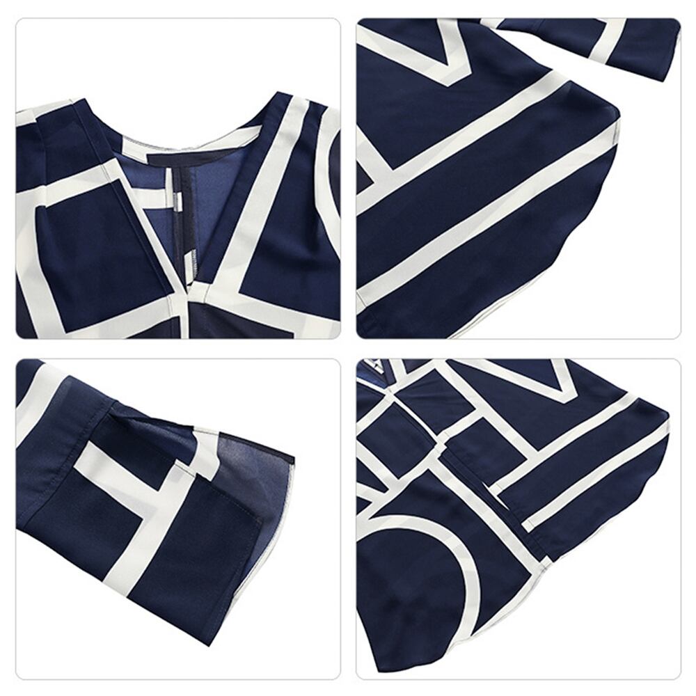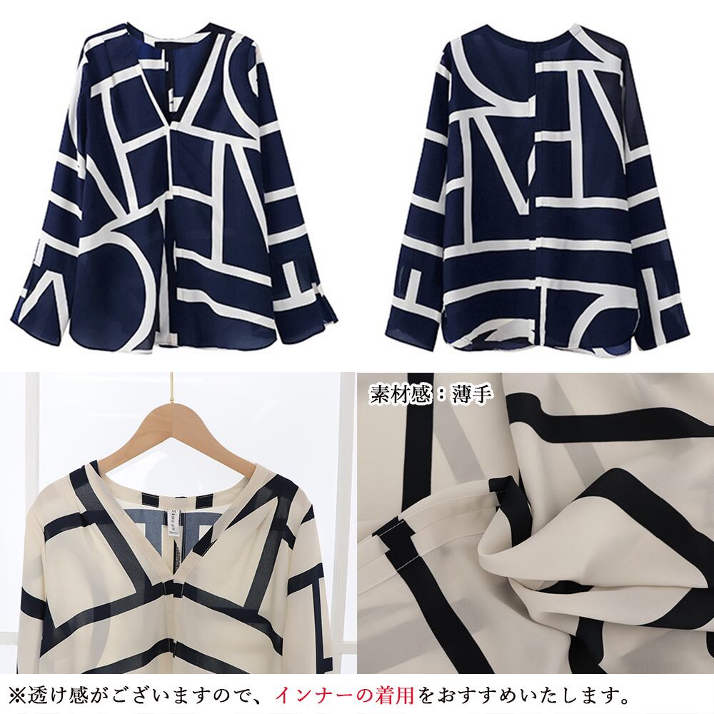 【日本倉庫即納】 幾何学模様ブラウスレディースVネック長袖