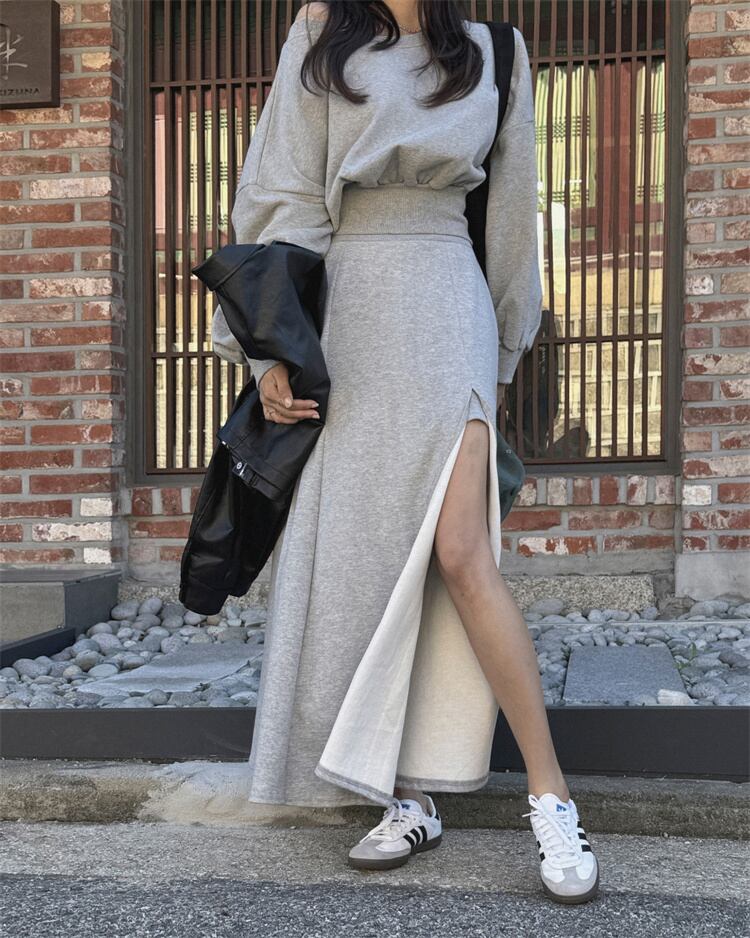 大人旬Style セットアップ 個性 ロングスカート あったか オフショルダー トップス スプリット スカート
