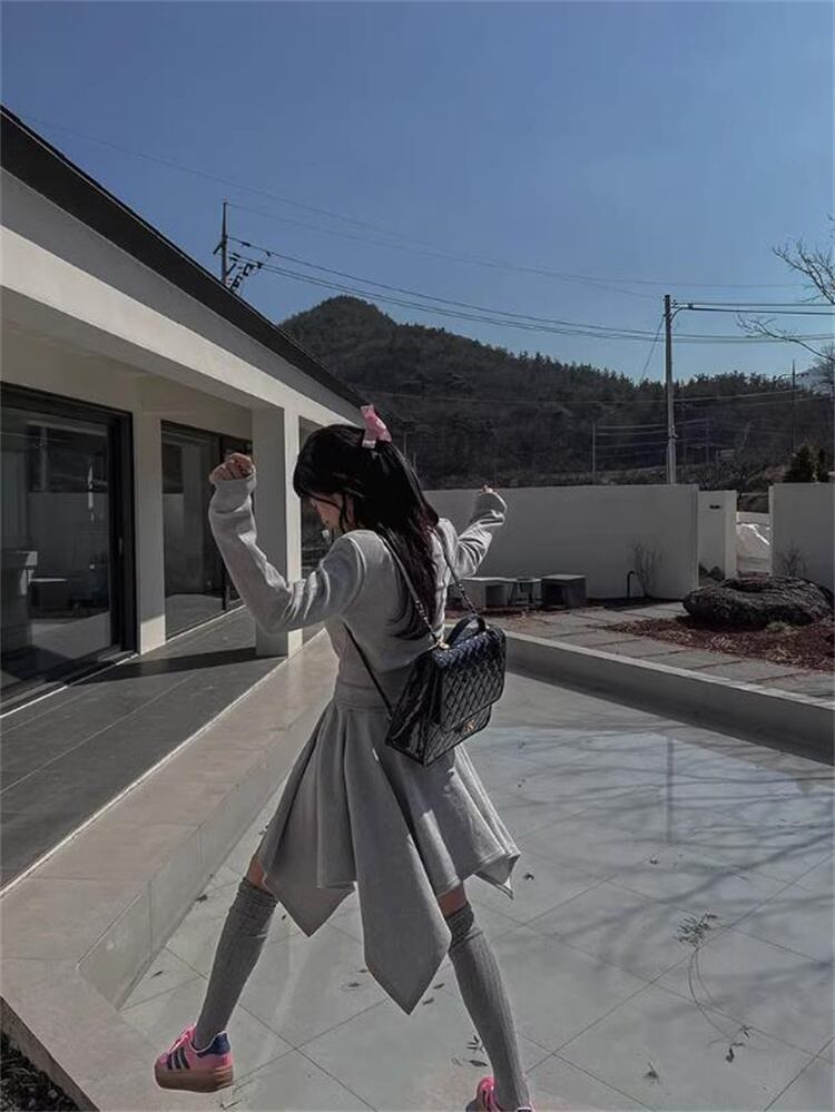 初恋のように 2024秋冬 長袖 イレギュラー ミニスカート セットアップ カジュアル Vネック トップス
