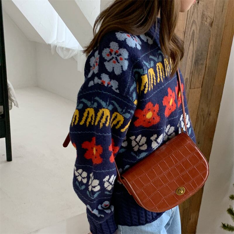 ins超人気★レトロ 長袖 ニット生地 ラウンドネック 花柄 秋 セーター