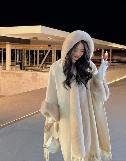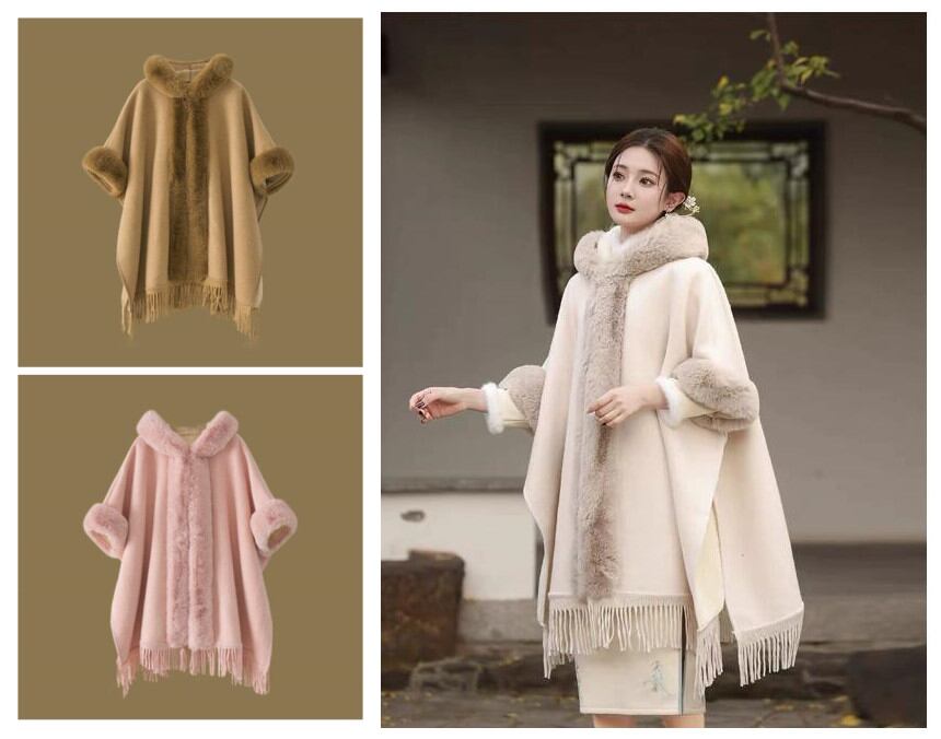 冬 暖かいマント 防寒 厚いトップス ケープ 新年会 忘年会 お歳暮 デート着 フード付き フリンジ