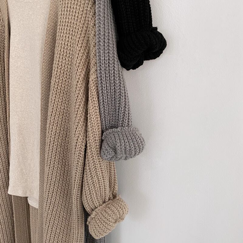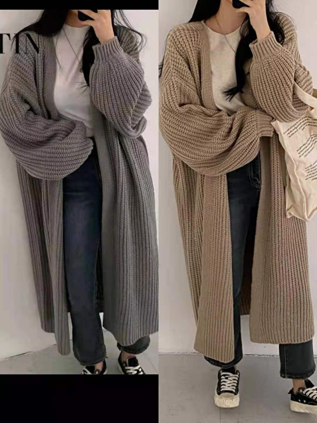 【2021INS 新作】カジュアル レイジー風 ランタンスリーブ ニット生地 裏起毛 ロング カーディガン